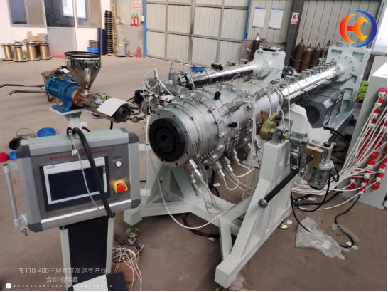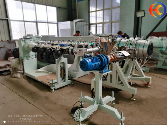 1、PE三層共擠設(shè)備采用90/38高效單螺桿擠出機(jī)。